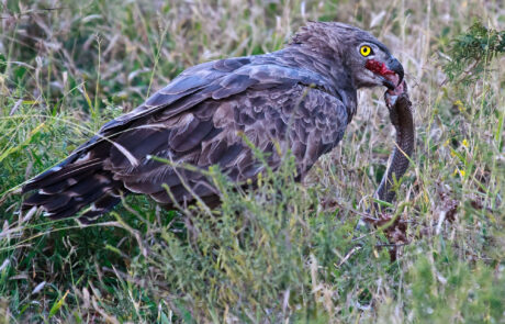 On commercial farms, extensive cleared areas may attract migrant raptors such as lesser spotted and steppe eagles, lesser kestrel and Eastern red-footed falcon. Bare fields may be used by Abdim’s stork (m), crowned plover (crowned lapwing) (m), red-capped lark (m), chestnut-backed sparrow-lark, Richard’s and Buffy (m) pipits and capped wheatear (m). Wheat crops may be attacked by flocks of red-billed quelea.