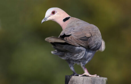 A number of nocturnal birds perch on roads at night and may be killed by traffic. These include the three-banded and bronze-winged coursers, spotted eagle owl and nightjars. During the day doves, particularly the Cape turtle dove, come to untarred roads to ingest grit. At times, European swallows (m) perch in flocks on tarred roads.