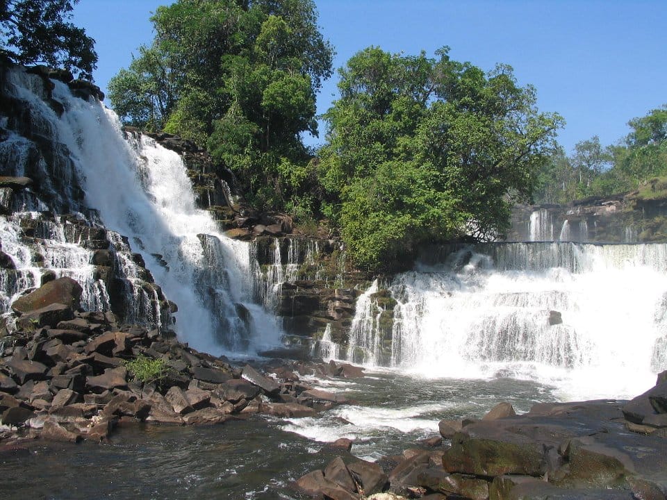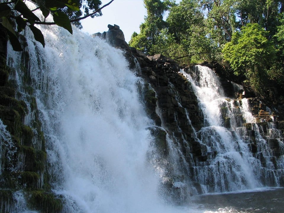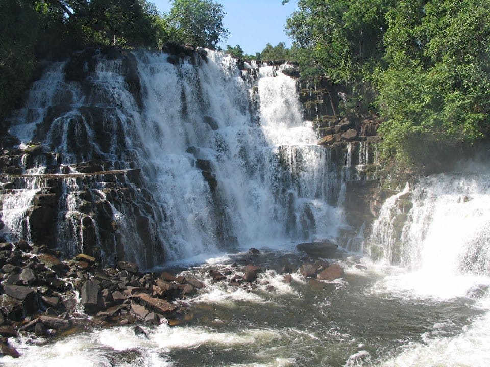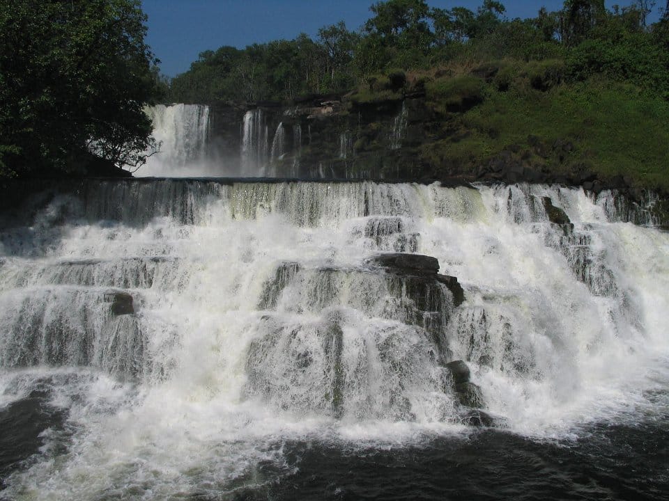 Five kms down the Kalungwishi river from the Lumangwe Falls (above) you’ll find this group of three powerful cascades, each spilling into the next. The Falls are a revered shrine for the local people. Many frogs are seen here which locals say they are the earthly forms of snake spirits. The Spirits do not allow the building of houses or any frivolity nearby. Beneath the falls there is a thickly wooded ravine and some ancient paintings adorning nearby rock faces beneath a permanent rainbow.
