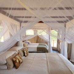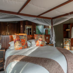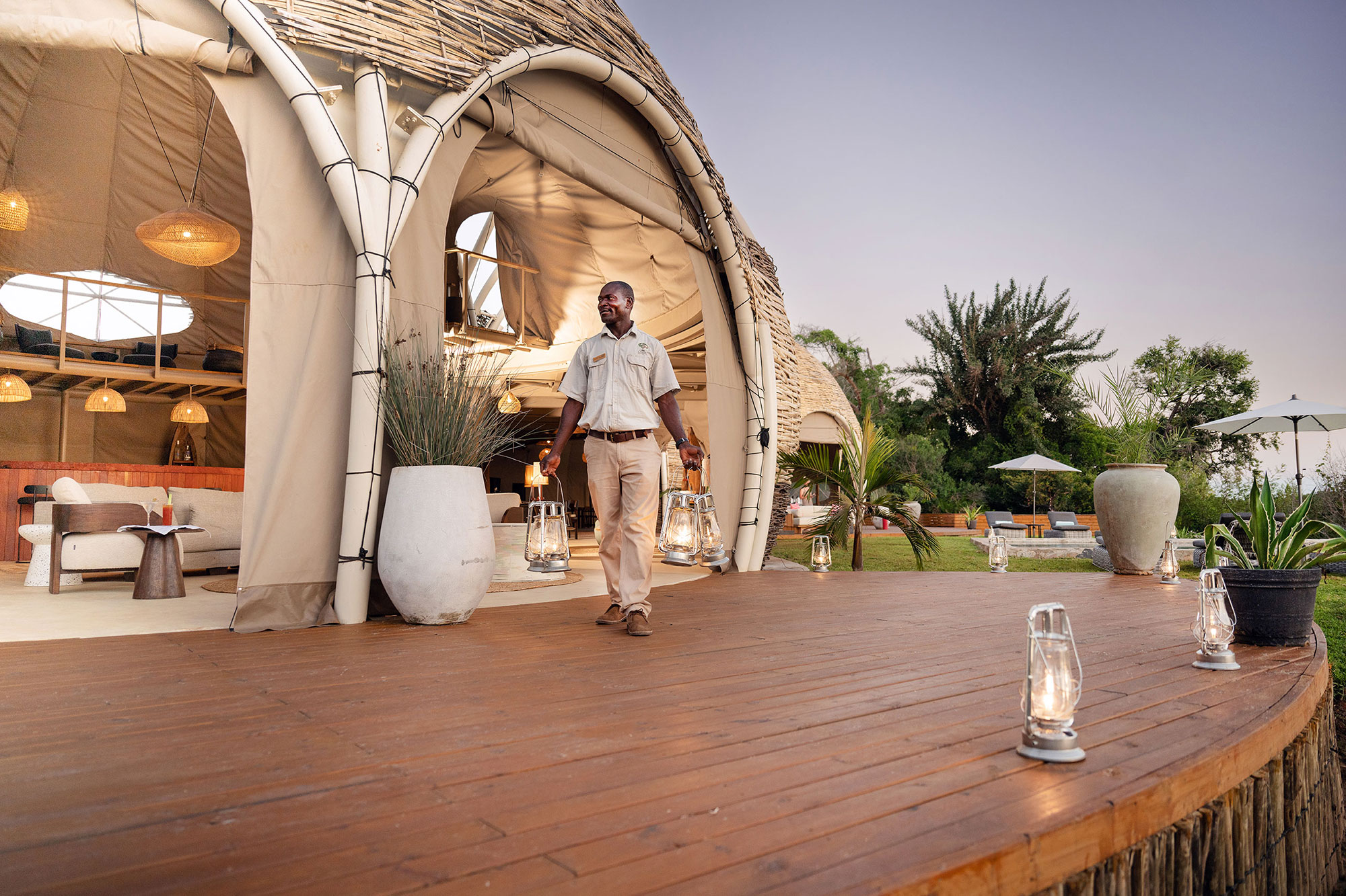 Blending into the luscious, tree-filled landscapes are 10 State of the Art Luxury tents and a u-Shaped boma designed to allow for sweeping 360 views over the river and onto one of Africa’s largest National Parks.