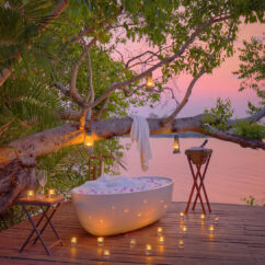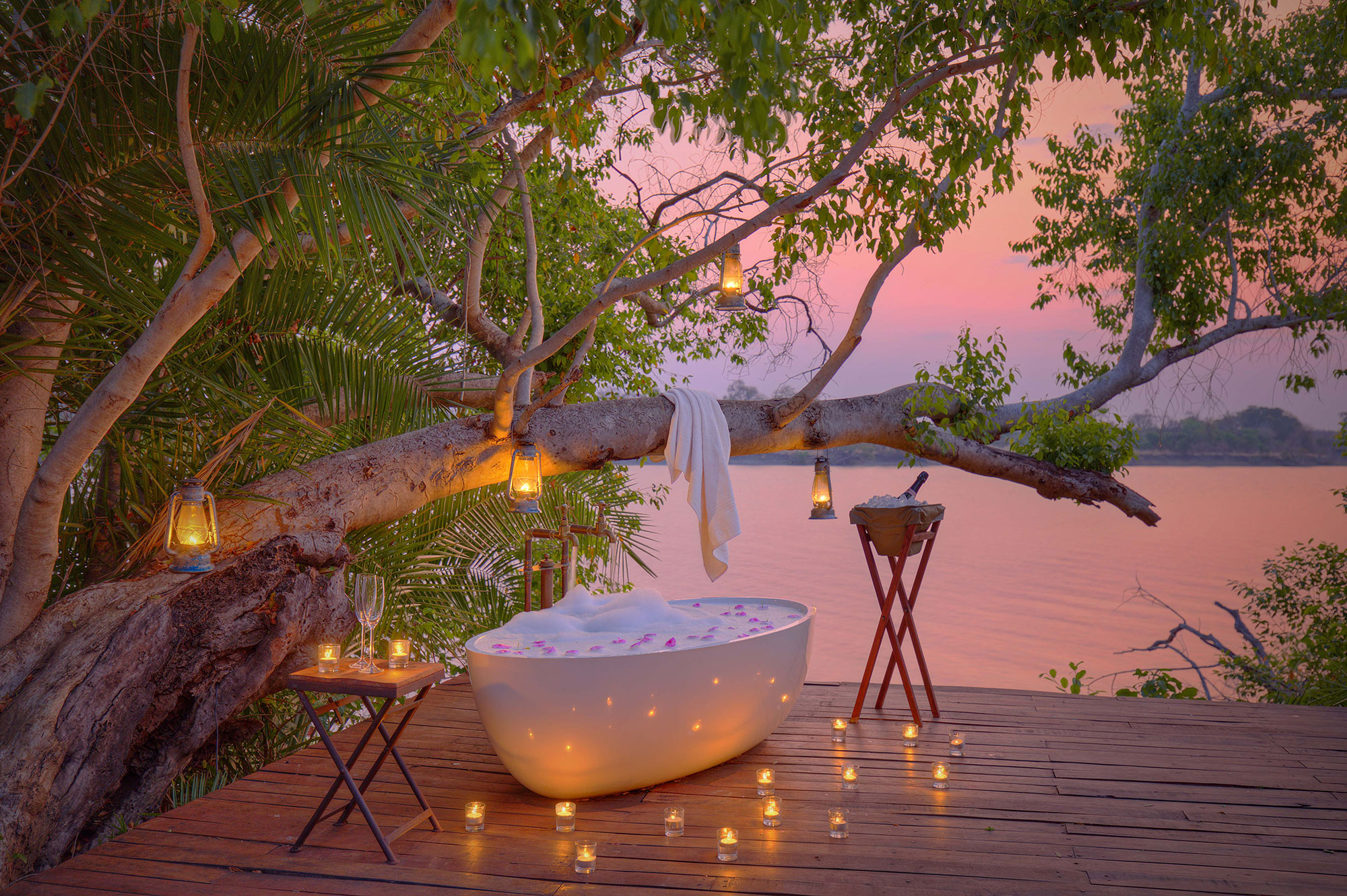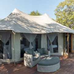 8 luxury couples tents have indoor showers with either king or twin beds. Each tent has an indoor shower, of which 6 have outdoor showers and two have stunning bathtubs so you can enjoy sunsets and bubble baths with the company of the resident hippo pod below your deck.