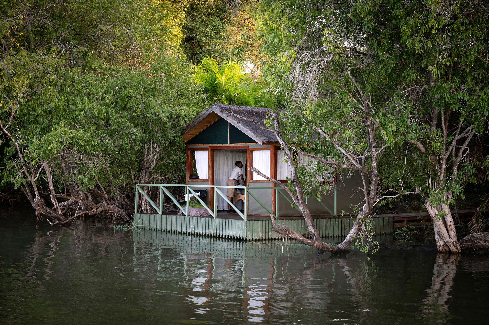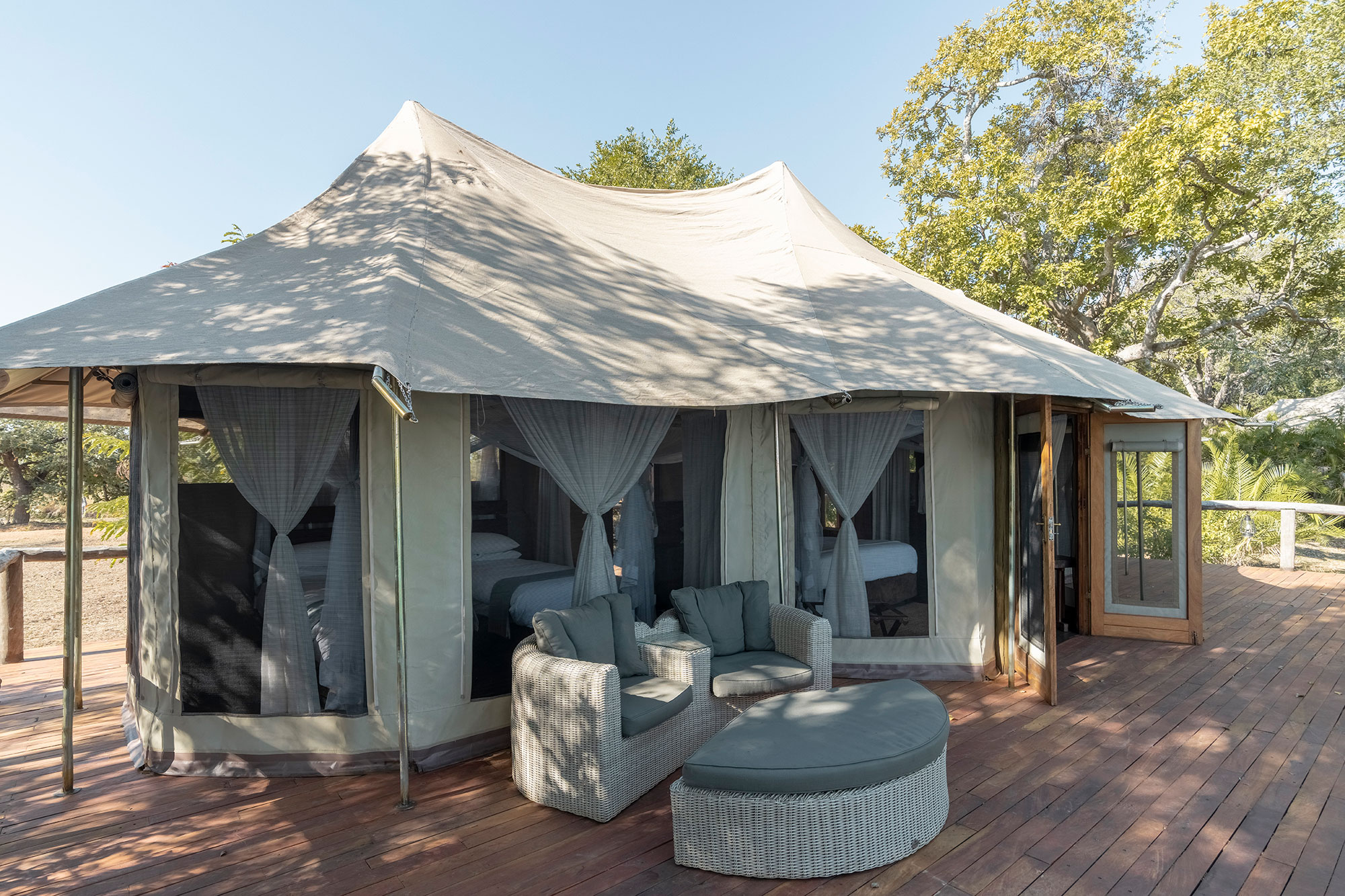 Each luxury tent offers dreamy panoramic views of the Kafue River and the National Park from the deck so you can watch the sunset or watch the buffalo on the opposite bank casually stroll down in the hundreds for an evening drink.
