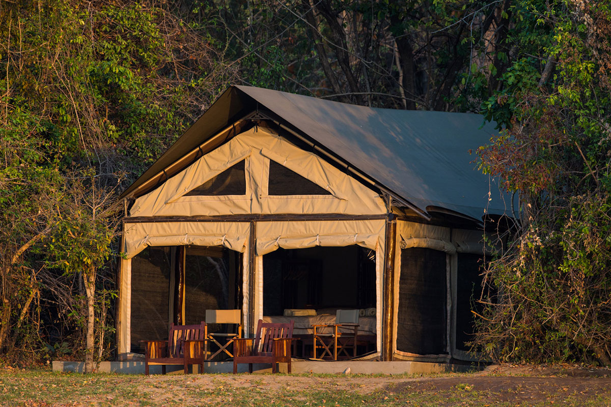 The safari tents offer a traditional bush-camp feel, with comfortable sleeping arrangements and convenient access to shared facilities.