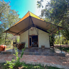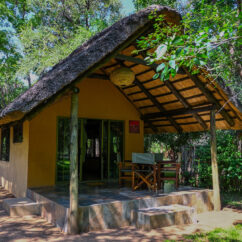 The accommodation includes well-appointed chalets and guest rooms built for comfort and practicality. Each unit is furnished with comfortable beds, en-suite bathroom facilities, air conditioning or fans, and essential in-room amenities. Rooms are spaced to allow privacy and quiet, making the lodge suitable for couples, families, business travelers, and small groups. Verandas and outdoor sitting areas allow guests to enjoy the natural surroundings and fresh air.