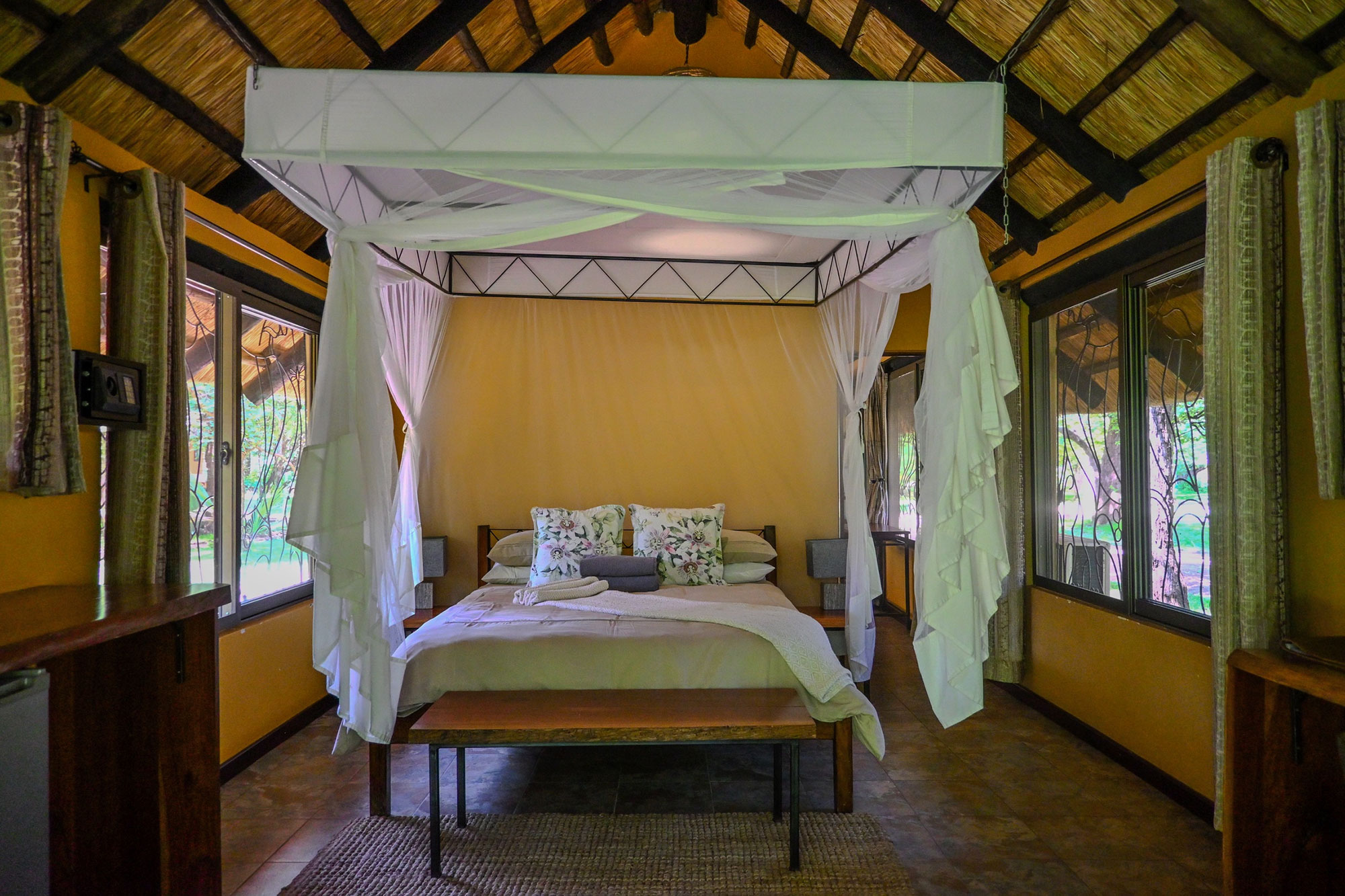 The accommodation includes well-appointed chalets and guest rooms built for comfort and practicality. Each unit is furnished with comfortable beds, en-suite bathroom facilities, air conditioning or fans, and essential in-room amenities. Rooms are spaced to allow privacy and quiet, making the lodge suitable for couples, families, business travelers, and small groups. Verandas and outdoor sitting areas allow guests to enjoy the natural surroundings and fresh air.