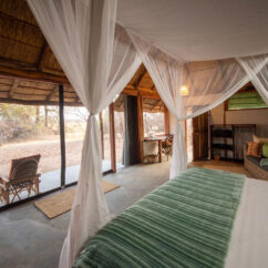 The camp’s main area features an open-sided lounge and dining space overlooking the lake, providing a relaxed setting for meals and quiet moments. Nanzhila Lake Camp is particularly renowned for its rich wildlife, especially its strong predator sightings.