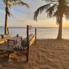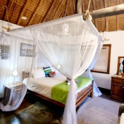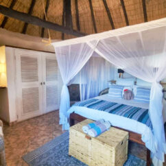 Beachfront Deluxe Chalets – Coastal-style thatched rooms with private verandas and sweeping lake views. Rooms are equipped with tea and coffee facilities, a bar fridge, fans, mosquito nets and amenities. There are two queen rooms featuring outdoor waterfall showers and a 2-bedroom family suite with adjoining lounge.