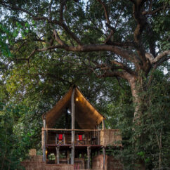 Chikoko Tree Camp has three chalets elevated on stilts amongst mahogany and sausage tree canopies. The chalets offer a commanding view of the surrounding wildlife and Acacia plains.
