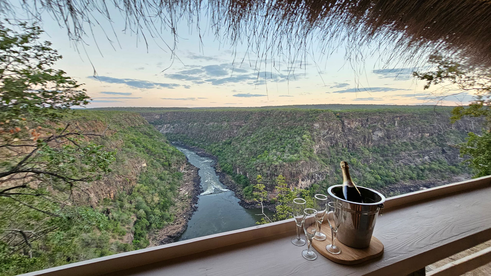 Taita Falcon Lodge offers an intimate and unique stay, with accommodation designed to maximise its spectacular position high above the Batoka Gorge. The lodge comprises a small number of private chalets, each carefully spaced to ensure privacy and uninterrupted views over the Zambezi River far below.