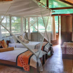 Each unit is thoughtfully furnished with comfortable beds, mosquito protection, en-suite bathrooms, and seating areas that create a calm retreat after game drives or walking safaris. Natural materials and open layouts help keep rooms cool and blend the structures into the surrounding environment. Solar lighting and eco-conscious systems are commonly used, supporting a low environmental footprint while maintaining convenience.