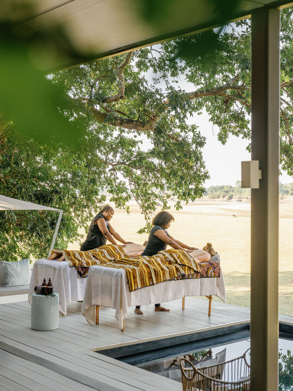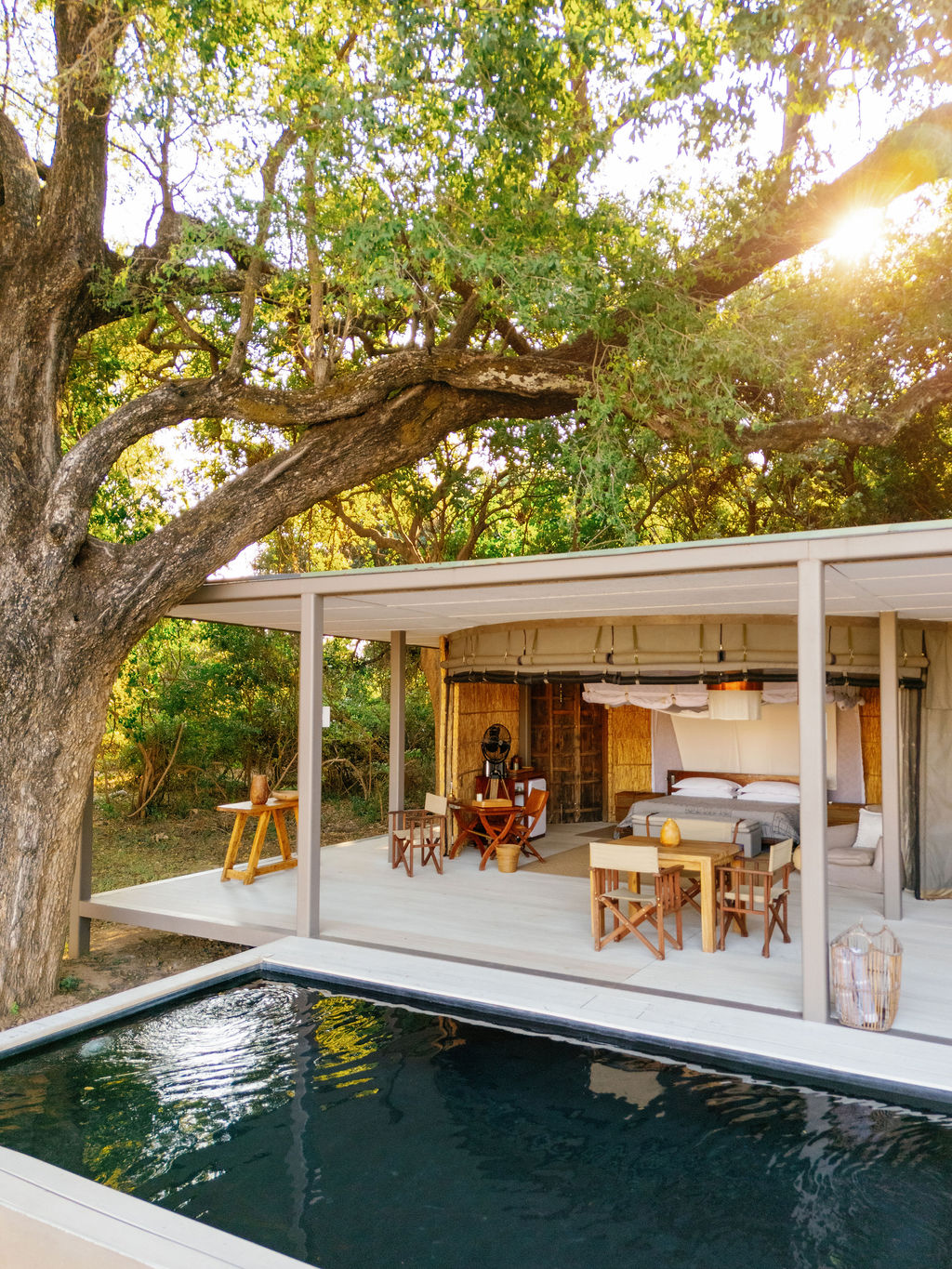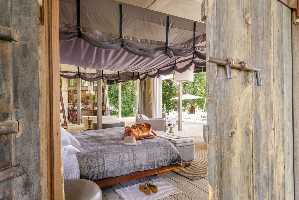 The award winning design blends canvas, timber and reed with leather accents and raw linen. A shaded verandah becomes your front row seat for slow afternoons, while in room spa treatments bring a restorative pause between safari hours.