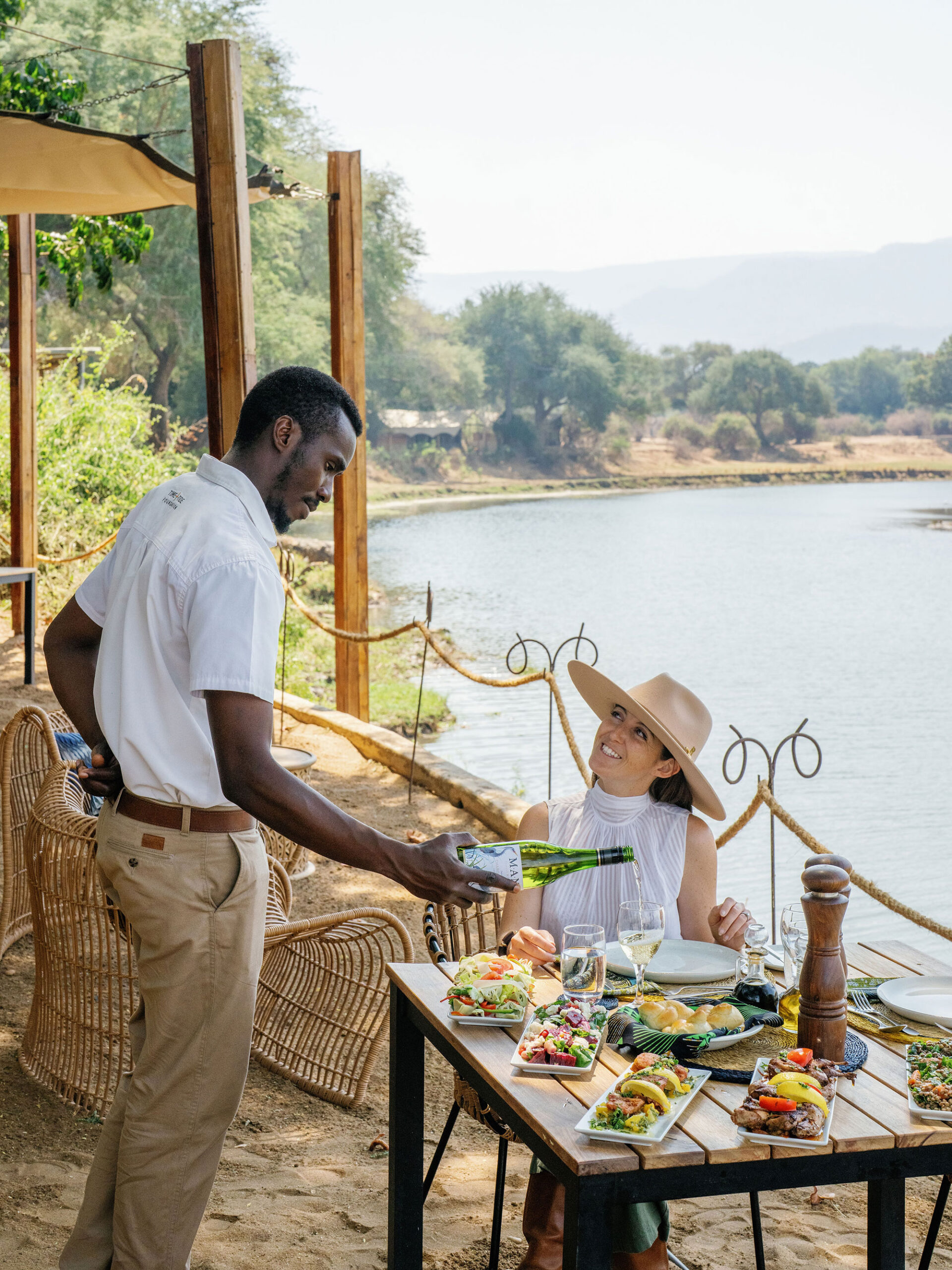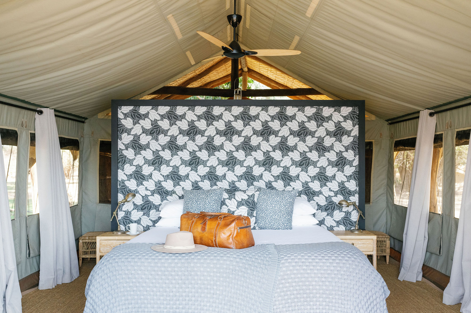 Recently refurbished, the camp is made up of eight classic safari tents set along the river’s edge. Each one is positioned for sweeping views over the Chongwe, with a spacious open air bathroom, a shaded porch with comfortable lounge chairs, and thoughtful details including local textiles and handcrafted furniture. It is an easy place to settle in, with the river always in sight and the valley’s calm all around you.
