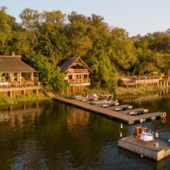 Open-sided, thatched chalets allow guests to soak up the sights and sounds of the African bush in the perfect, pristine setting. Views across the floodplains of the Zambezi and into the nearby National Park complete the experience.