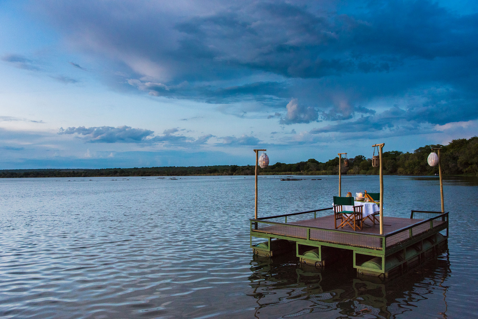 Open-sided, thatched chalets allow guests to soak up the sights and sounds of the African bush in the perfect, pristine setting. Views across the floodplains of the Zambezi and into the nearby National Park complete the experience.