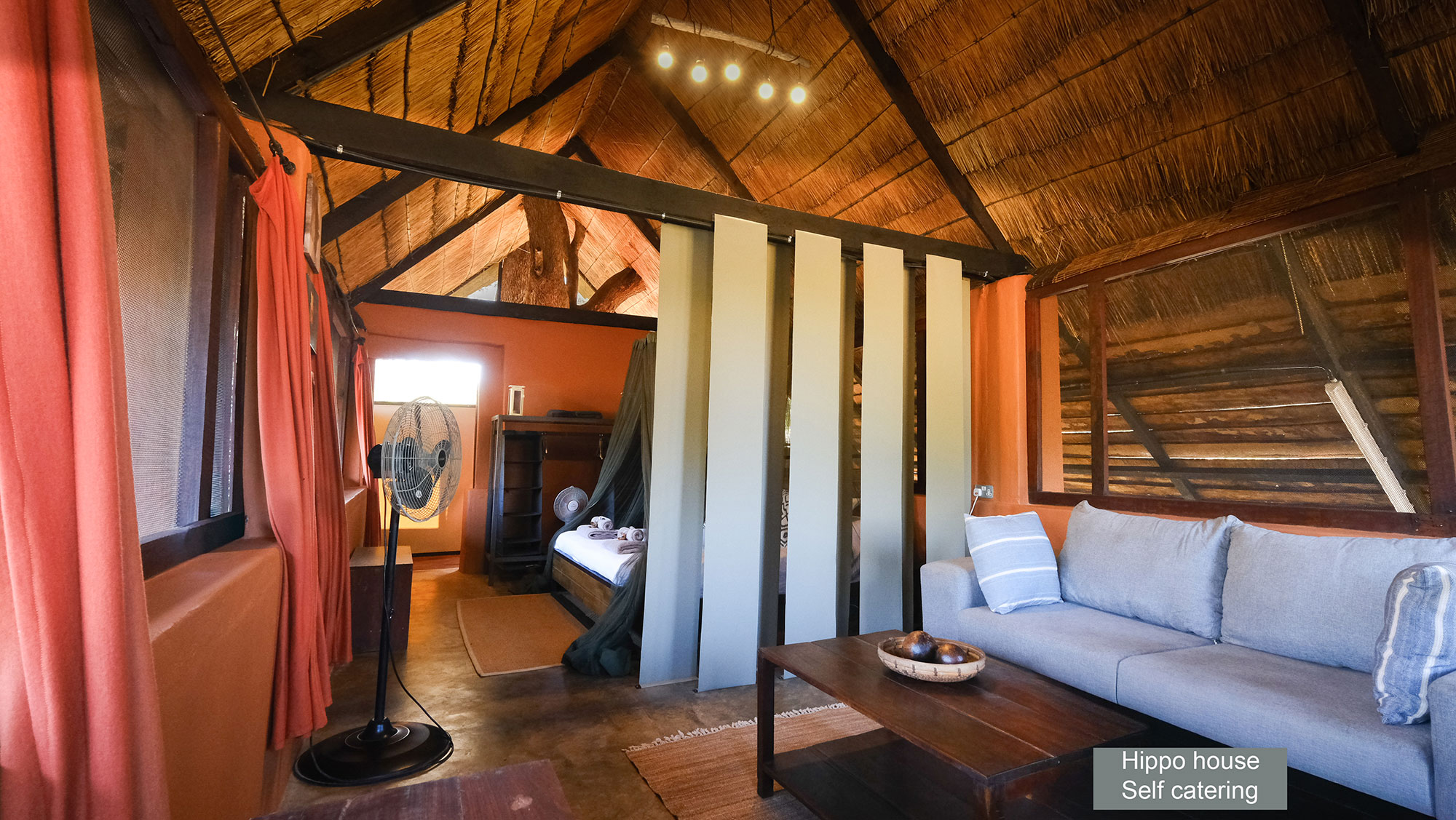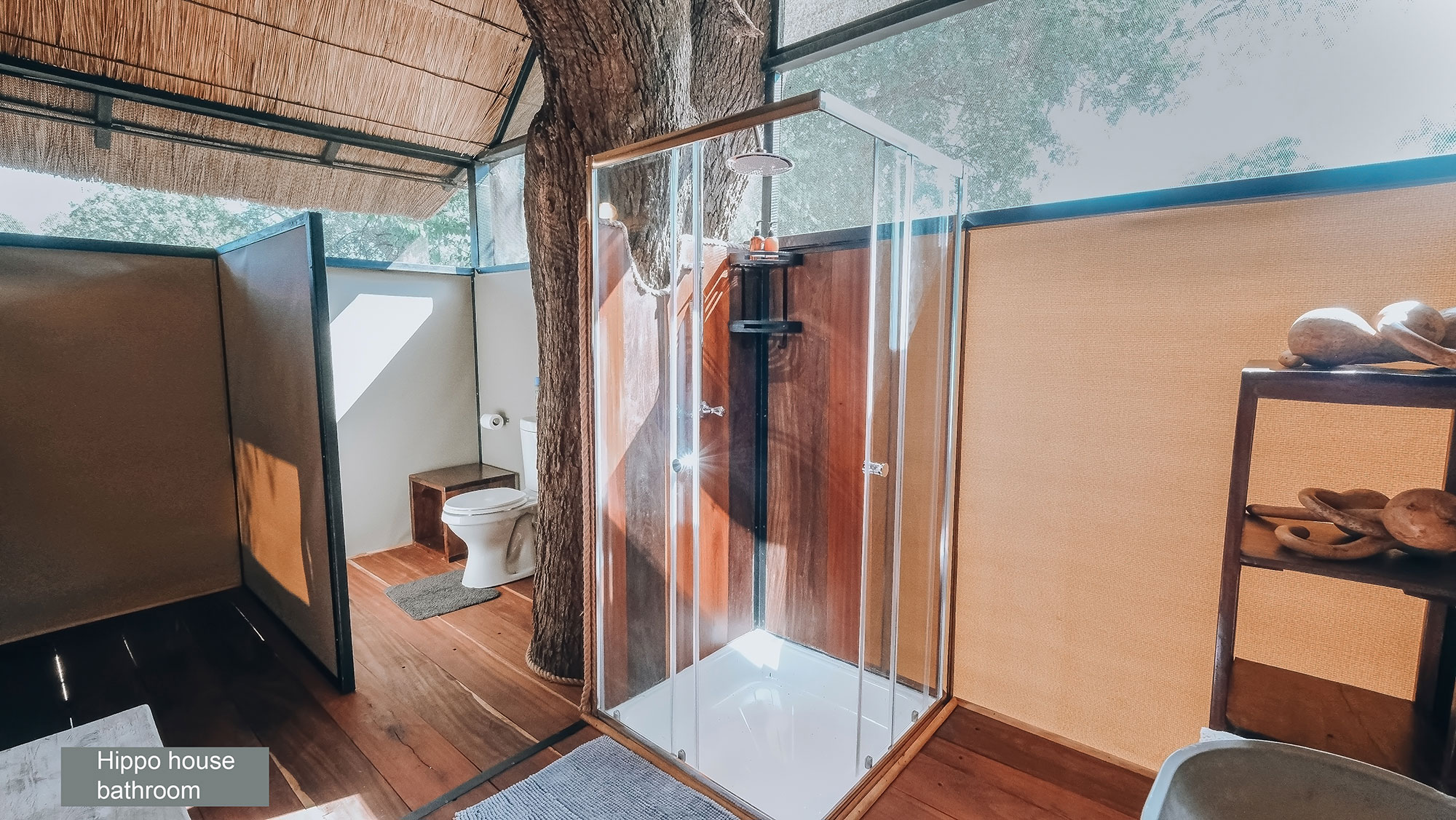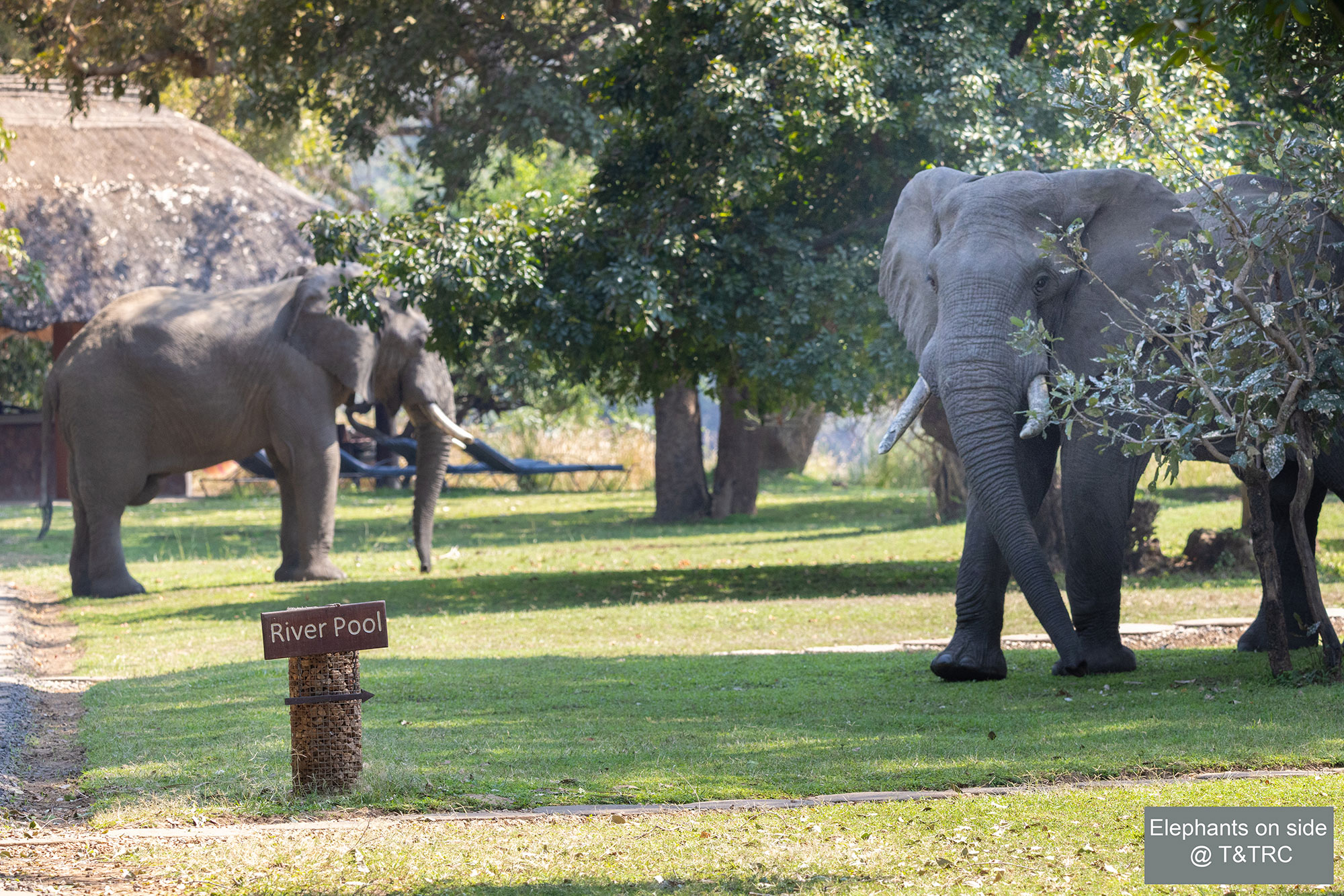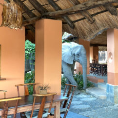 At the centrally located elevated swimming pool, you can keep an eye on the hippo’s in the river and crocodiles that lounge in the sun.