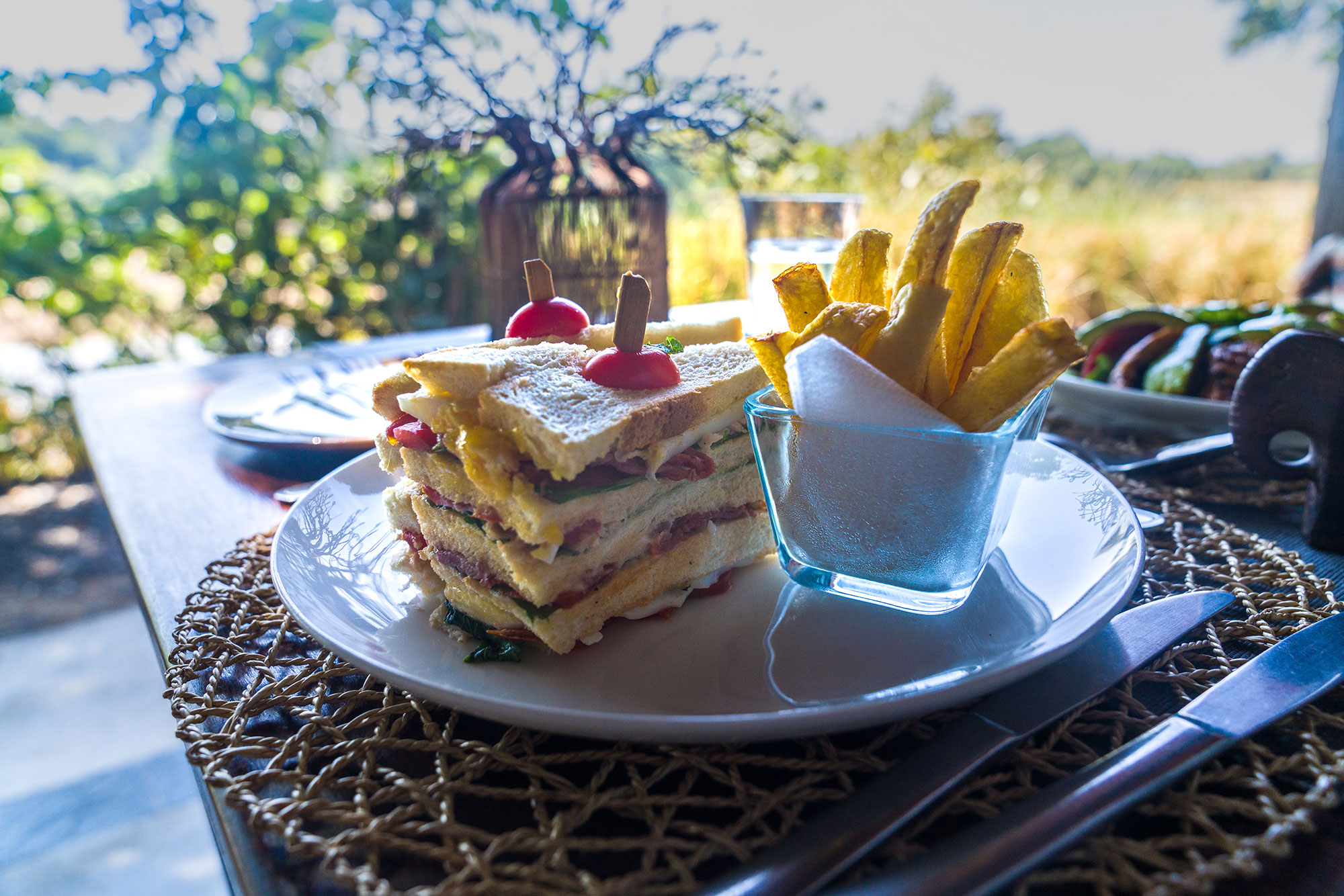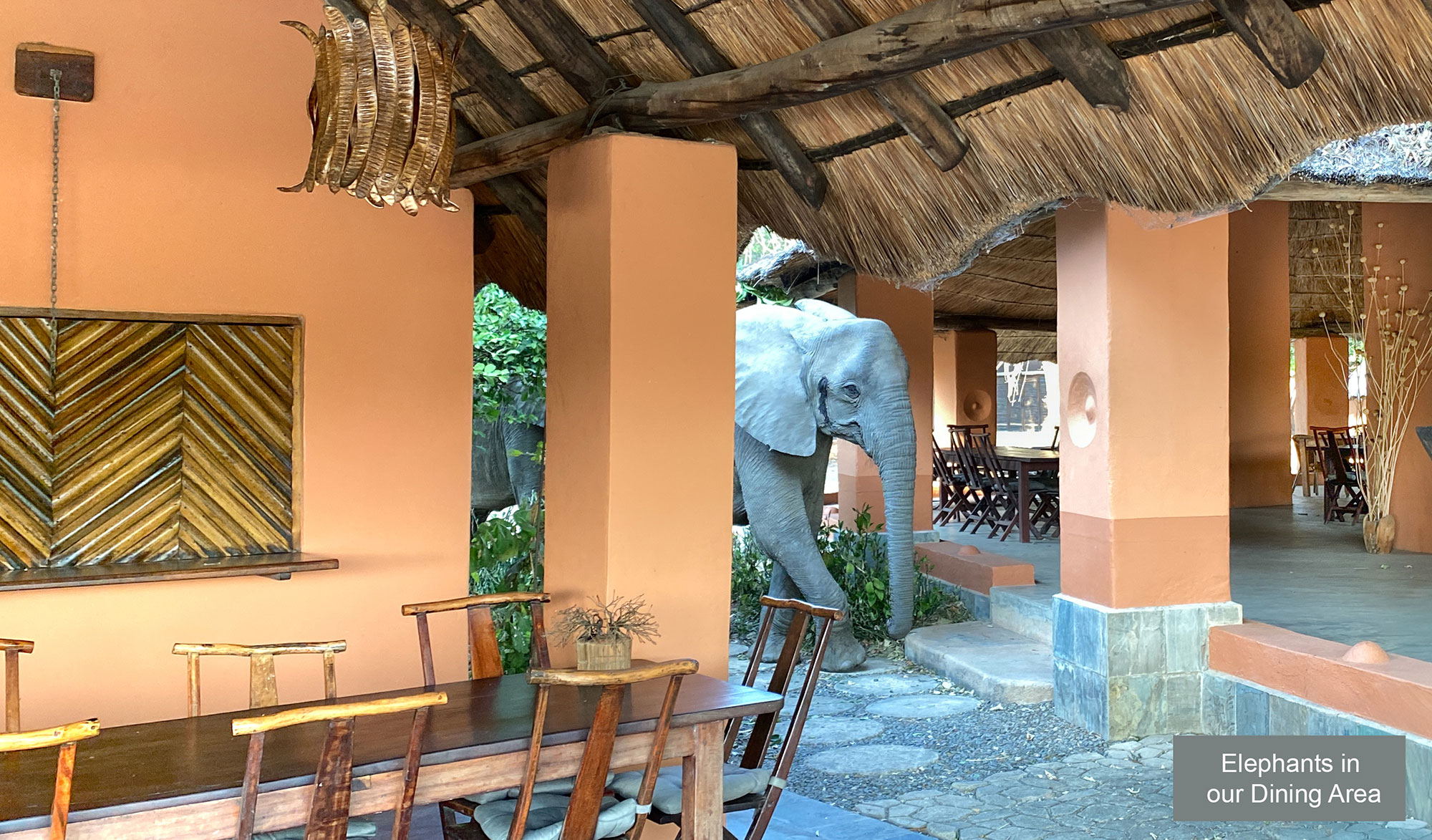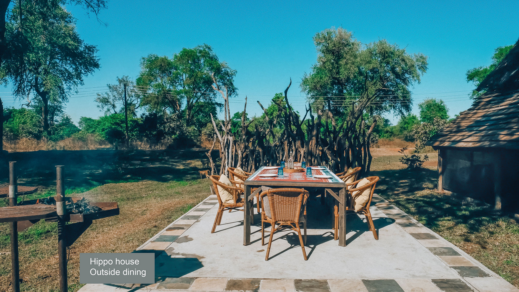 At the centrally located elevated swimming pool, you can keep an eye on the hippo’s in the river and crocodiles that lounge in the sun.