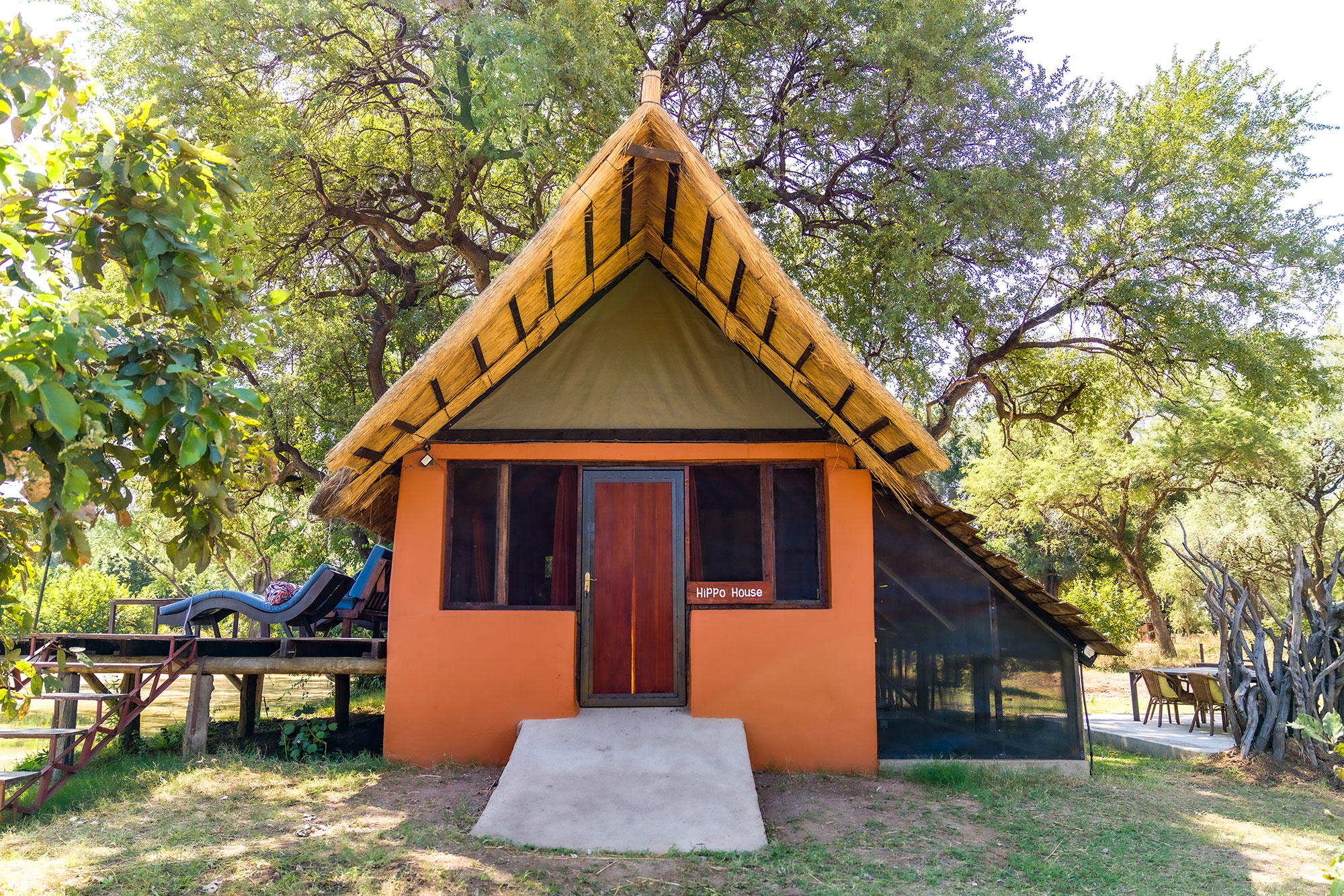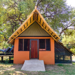 Accommodation varies from double and single-storey chalets to more secluded chalets on elevated platforms. Guests can also choose from three en-suite riverside safari tents, or the Hippo Hide — a self-catering bungalow set on a private lagoon frequently visited by hippo, elephant, giraffe, various antelope species, warthog and an abundance of birdlife. The spacious private sundeck offers the perfect spot to relax while watching wildlife pass by.