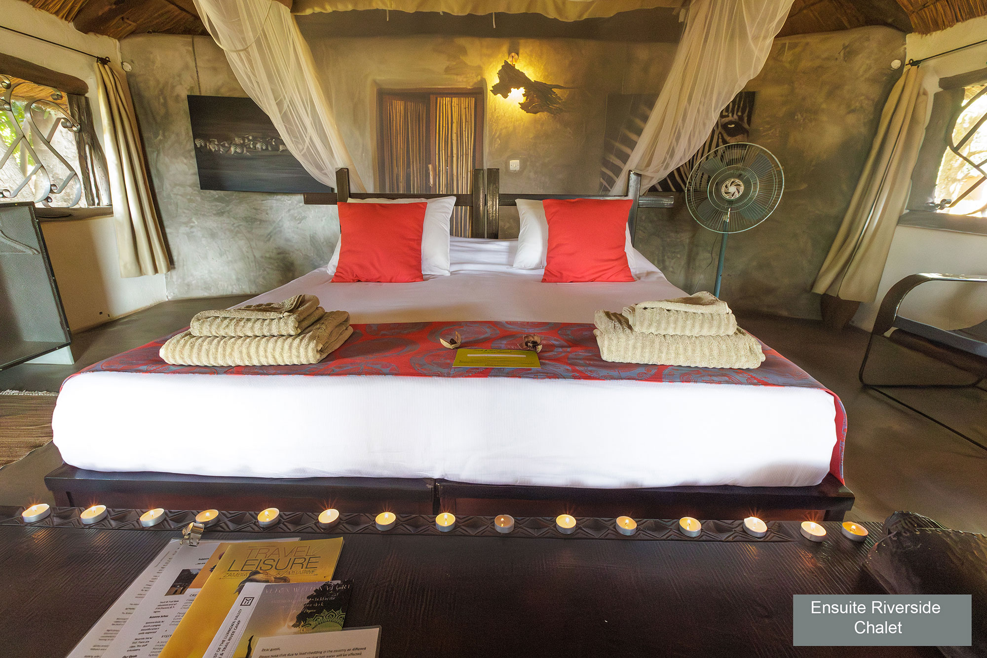 The 5 single-storey chalets offer traditional style with modern comfort, each with their own en-suite bathroom. Three chalets are on the riverbank and two chalets on elevated platforms are more secluded and perfect for a romantic getaway.