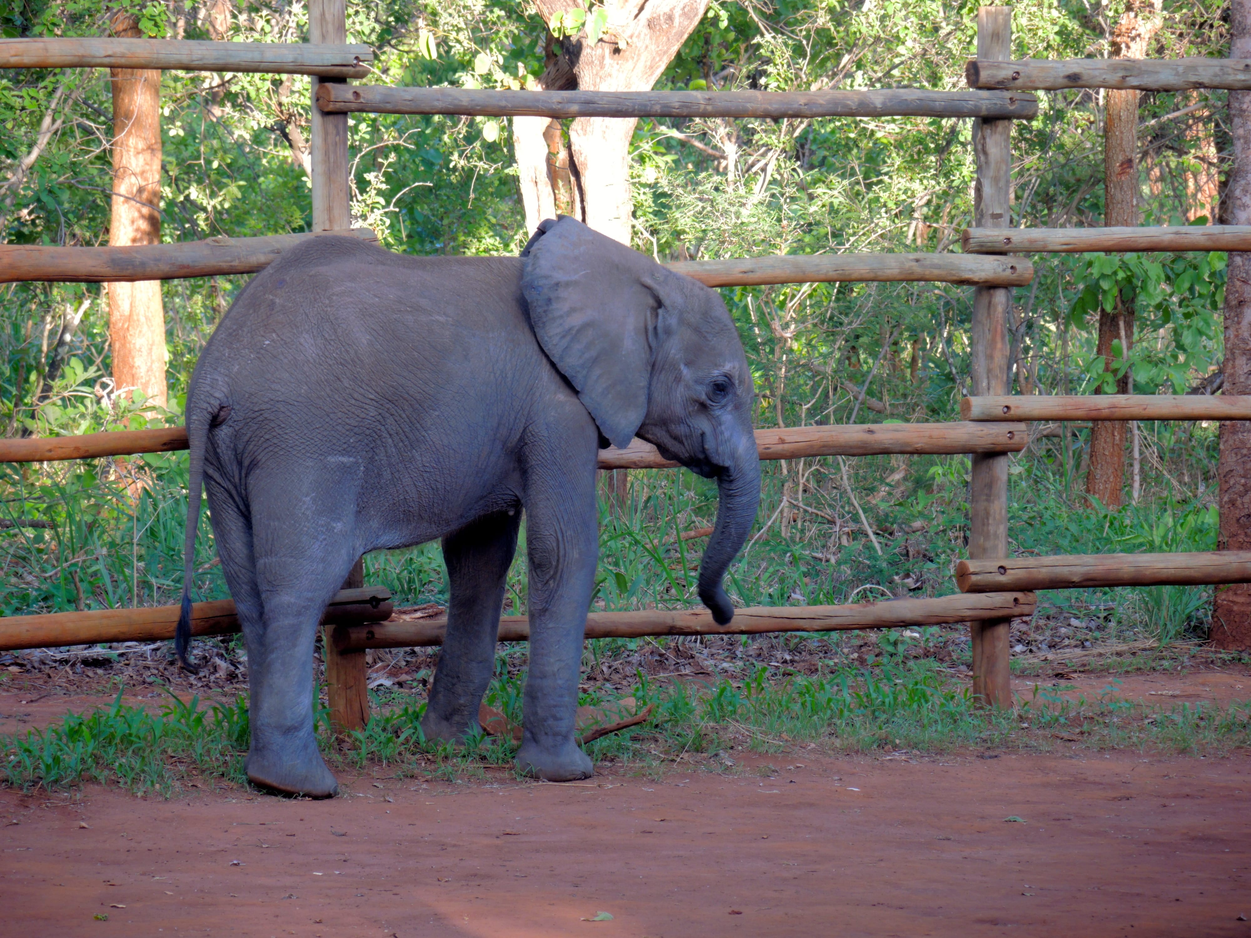 The calf is approximately 1½ years old and despite being dehydrated and malnourished he still seems strong. A closer inspection revealed exposed ribs, thin and patchy skin and warts on his trunk; all common symptoms for elephants in distress and poor health.