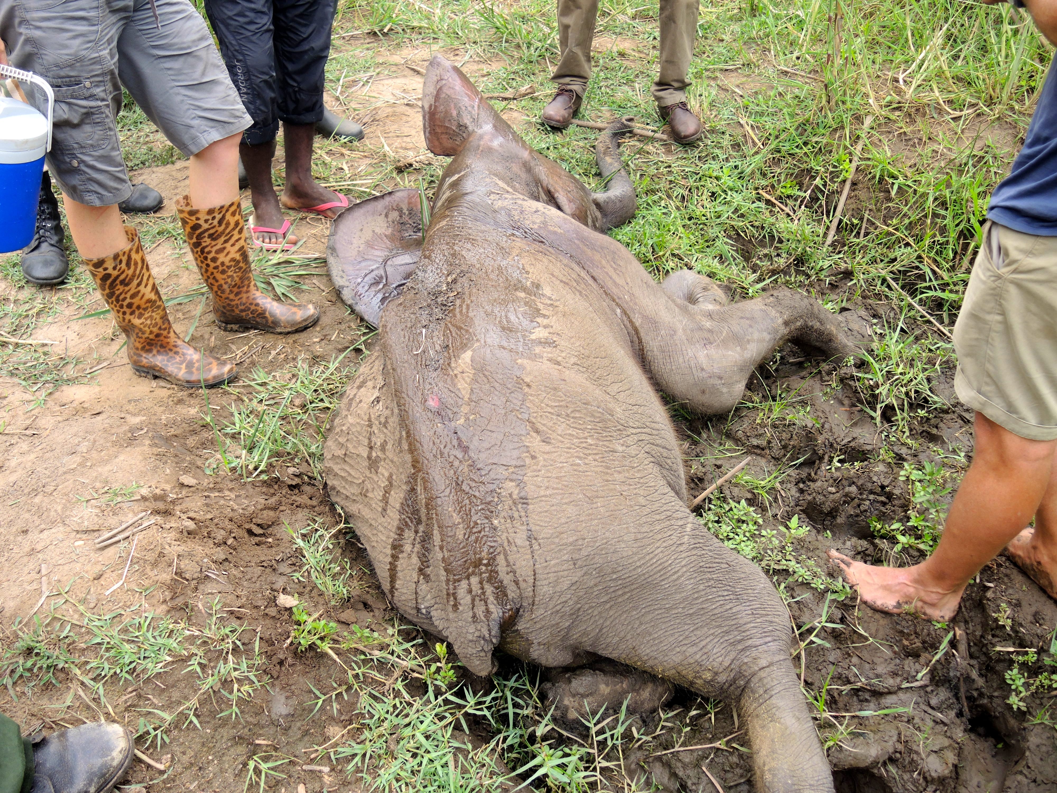 EOP Senior Keeper Ivan, who was in the area conducting an “Orphaned Elephant Awareness Campaign” to build positive relationships with local communities and encourage prompt reporting of lone elephant calves, could respond immediately.
