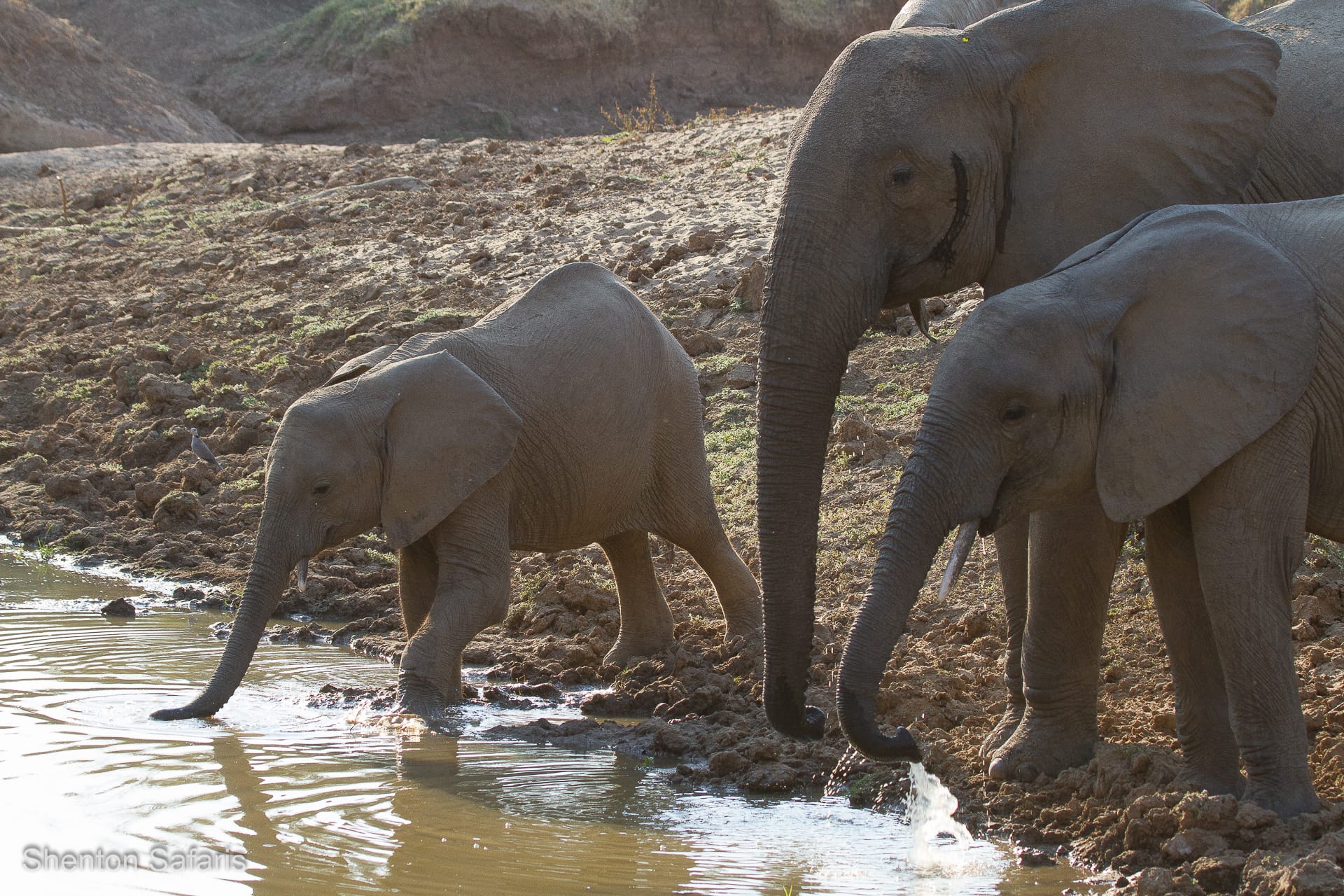 We have a small family of elephants, among others, coming down to use the water hole. The particular group in the photos consists of one adult female and two youngsters, the youngest being around four to five years old and the eldest around the eight to ten mark. Nothing unusual there as it is more common in the South Luangwa for us to see small family groups rather than big herds.