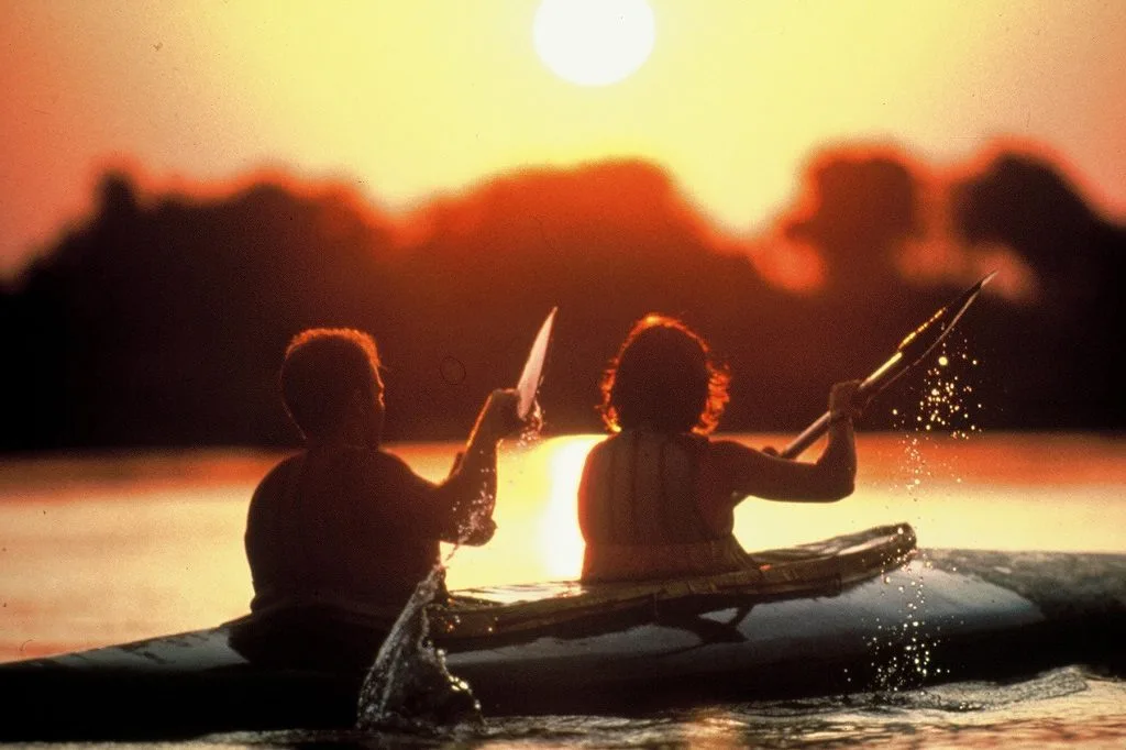 Canoeing at sunset on the mighty Zambezi River © Robin Pope Safaris