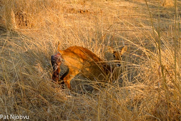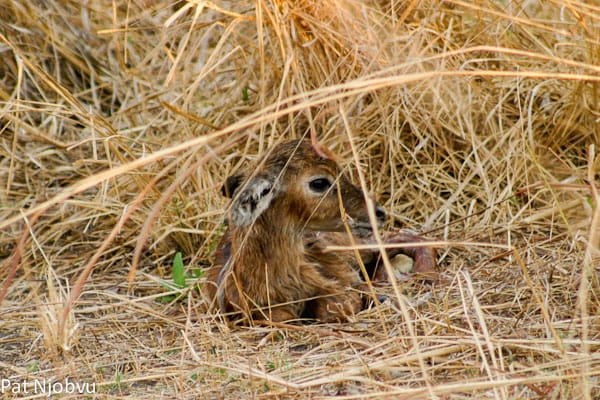There is so many things to see on safari, and some days, one can feel so unbelievably touched by what nature brings his or her way! As we say, you never know what’s around the corner, whether it is a large herd of elephants, or an elusive leopard. But on the evening of October 6th, it was a sighting of another nature that was witnessed by our guests: the birth of a baby puku. Pukus are antelopes which breeds all year round, and young ones can be seen with their mothers throughout the season. But actually witnessing the birth is very rare, as they usually take place behind tall grass, away from any disturbance.