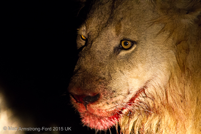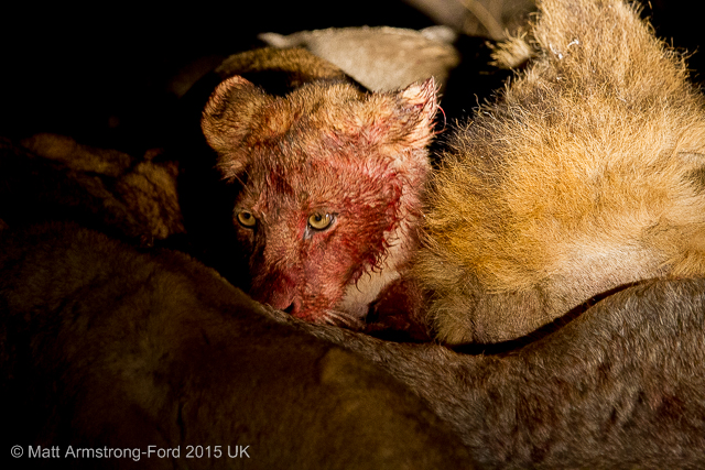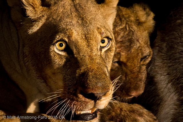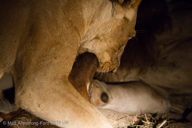 However, I would have to disagree. On a game drive late one evening in July we came to a small, dried up lagoon. All of a sudden we spotted a lioness in the beam of our spotlight crouched in front of a wall of grass that surrounded the dambo. It was clear from her posture she was waiting to pounce on whatever the rest of the pride managed to chase in her direction.